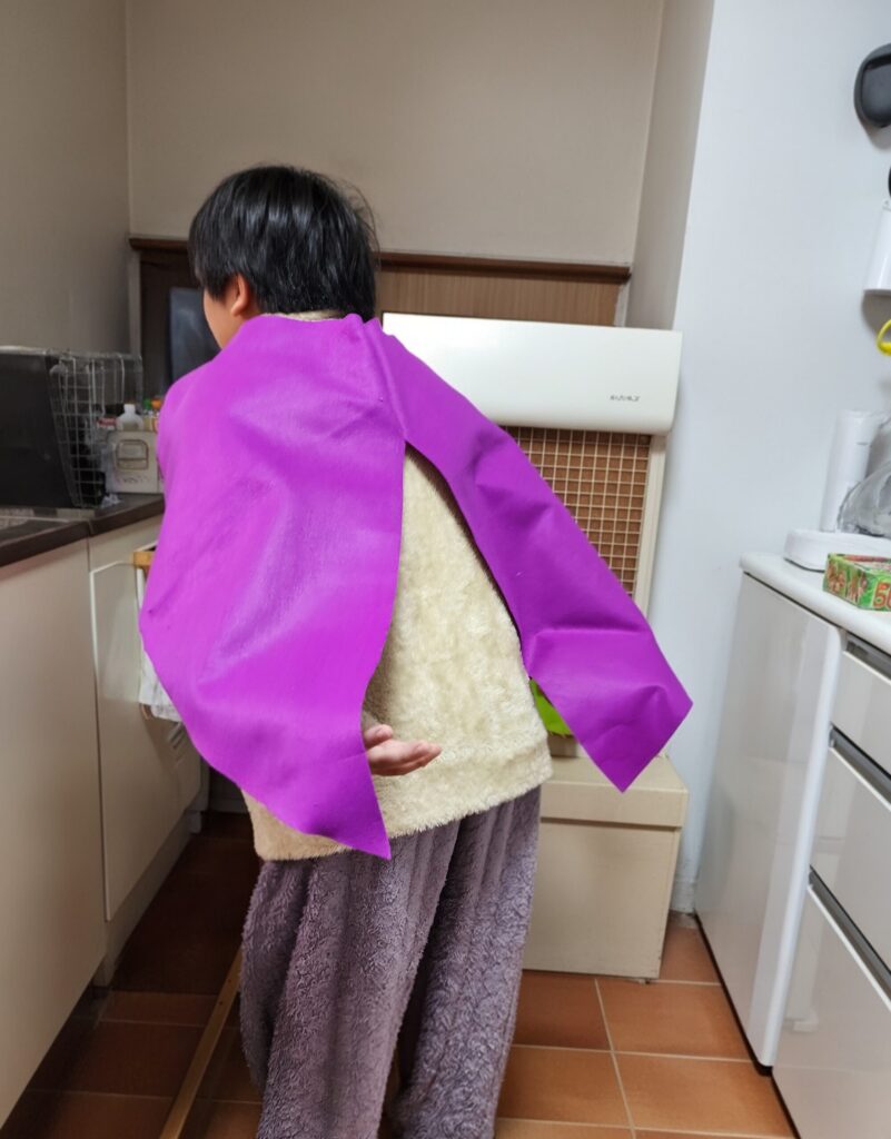 肩の部分はマジックテープで固定して、短く調整できるようにしました!